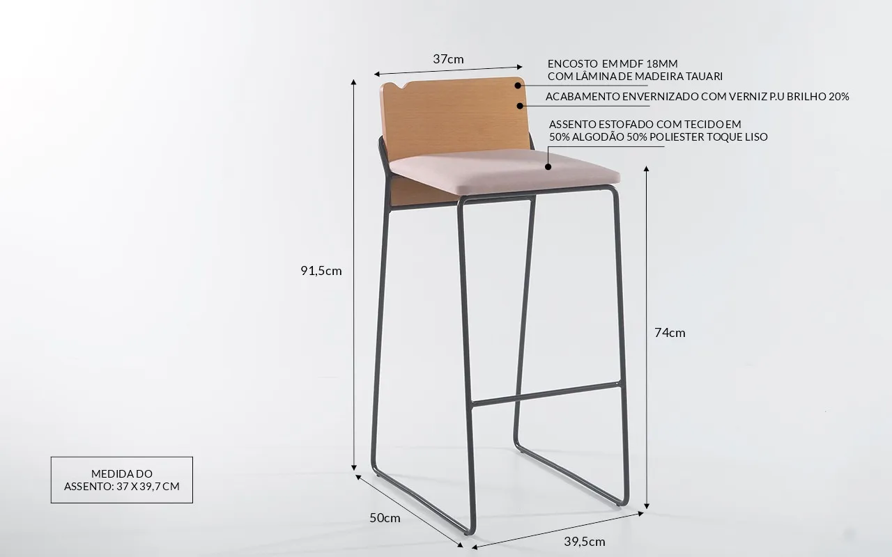 Além disso, é importante ressaltar, que esta banqueta com encosto possui a base em tubos de aço maciço com 13mm de espessura, o que garante muita resistência e durabilidade para o uso do dia-a-dia.
