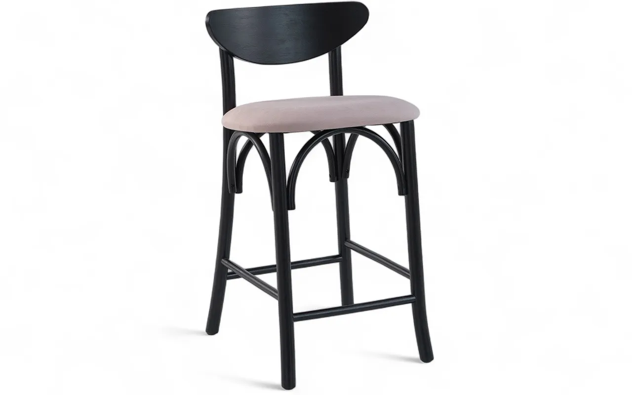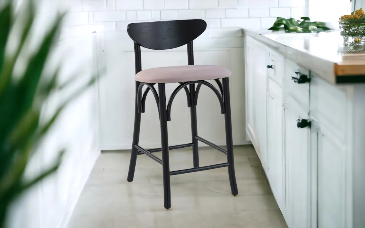 BANQUETA MÉDIA PARA COZINHA AMÉLIE LACA PRETO E TEC. 315 ALGODÃO ROSA 46X48X85CM