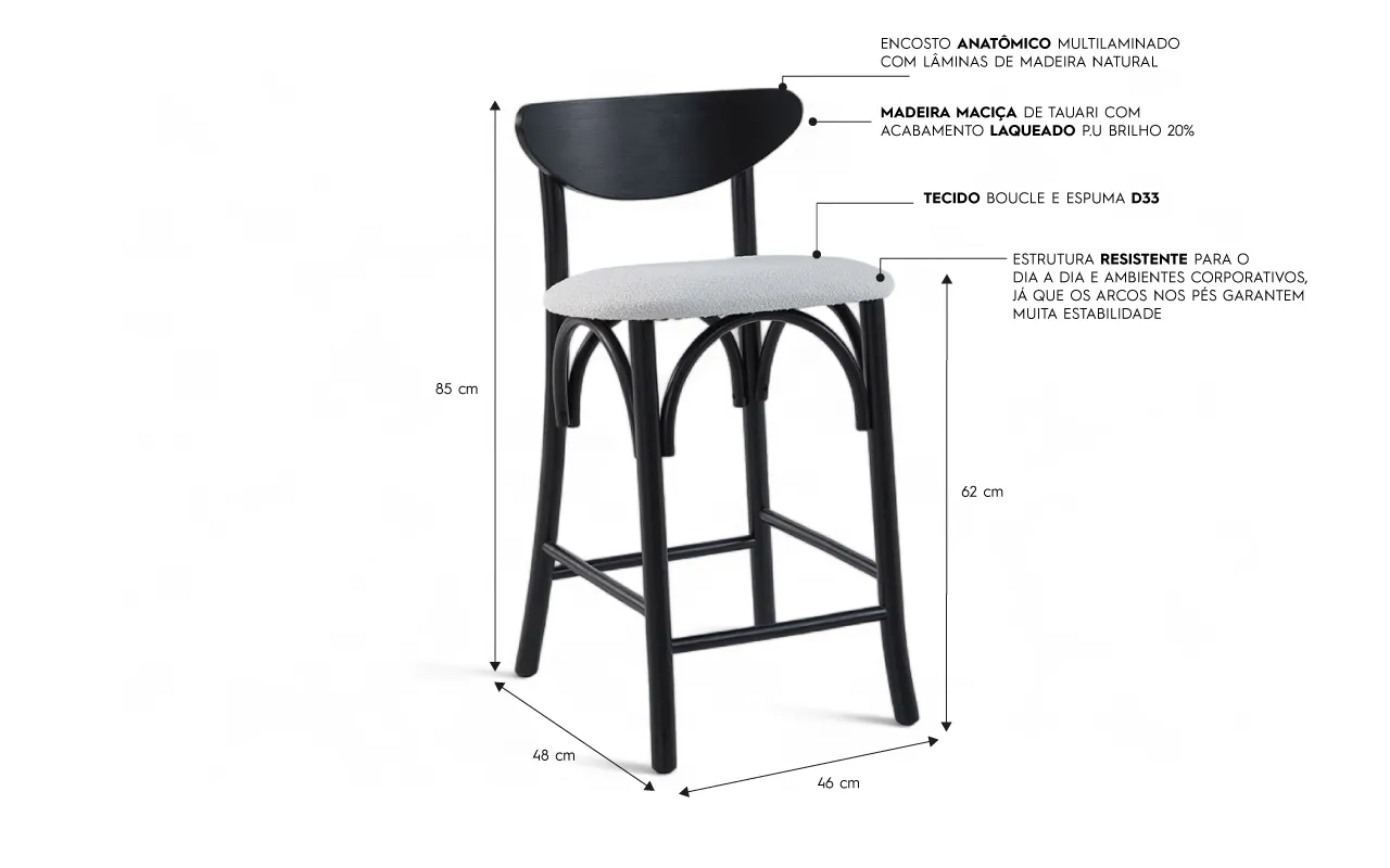 O seu encosto é anatômico, o que traz muito charme e conforto para a banqueta! Ele é construído com lâminas de madeira natural de excelente qualidade.